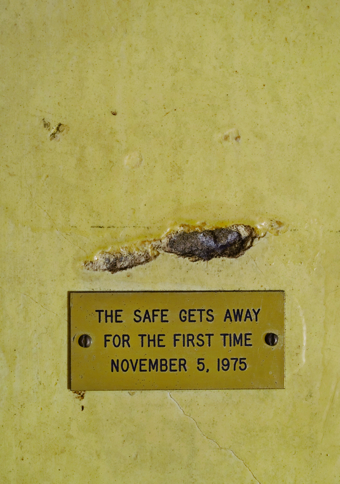 With a conceptual artist’s sense of humor, Ireland designated mundane details as works of art. While he was trying to move a heavy safe and a punch press left behind by Greub, the walls suffered several gashes and scratches. Under these blemishes, he mounted museum-like bronze plaques reading “The Safe Gets Away for the First Time November 5, 1975,” “The Safe Gets Away for the Second Time November 5, 1975,” and “The Punch Press Is Dragged Away November 5, 1975.” Lewallen’s exploration of these actions elucidates not only how Ireland saw the house and its quirks as artistic material, but also how he approached the larger world around him. She cites specific examples related to the house to explore how artists such as Joseph Beuys and John Cage influenced Ireland’s practice, and to better understand his relationship with contemporaries such as Tom Marioni and Tony Labat.