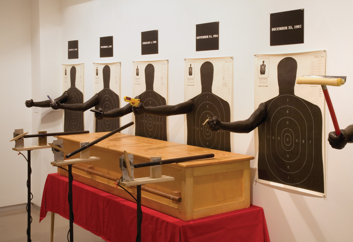 DS: In 2008, I showed a work about police murder called The Blue Wall of Violence, which was actually made in 1998, at MoCADA [the Museum of Contemporary African Diasporan Arts] in Brooklyn. [Patrolmen's Benevolent Association President] Patrick Lynch thought that this critique should not be allowed and called for the museum to be defunded. That was what they politely said. There is this thing called PoliceLink, which is like Facebook for cops, and there they basically said that the museum should be blown up! The director of the museum had to get a bodyguard for the duration of the show because she was worried about what would happen to her when armed enforcers of the state are threatening to blow up the museum.