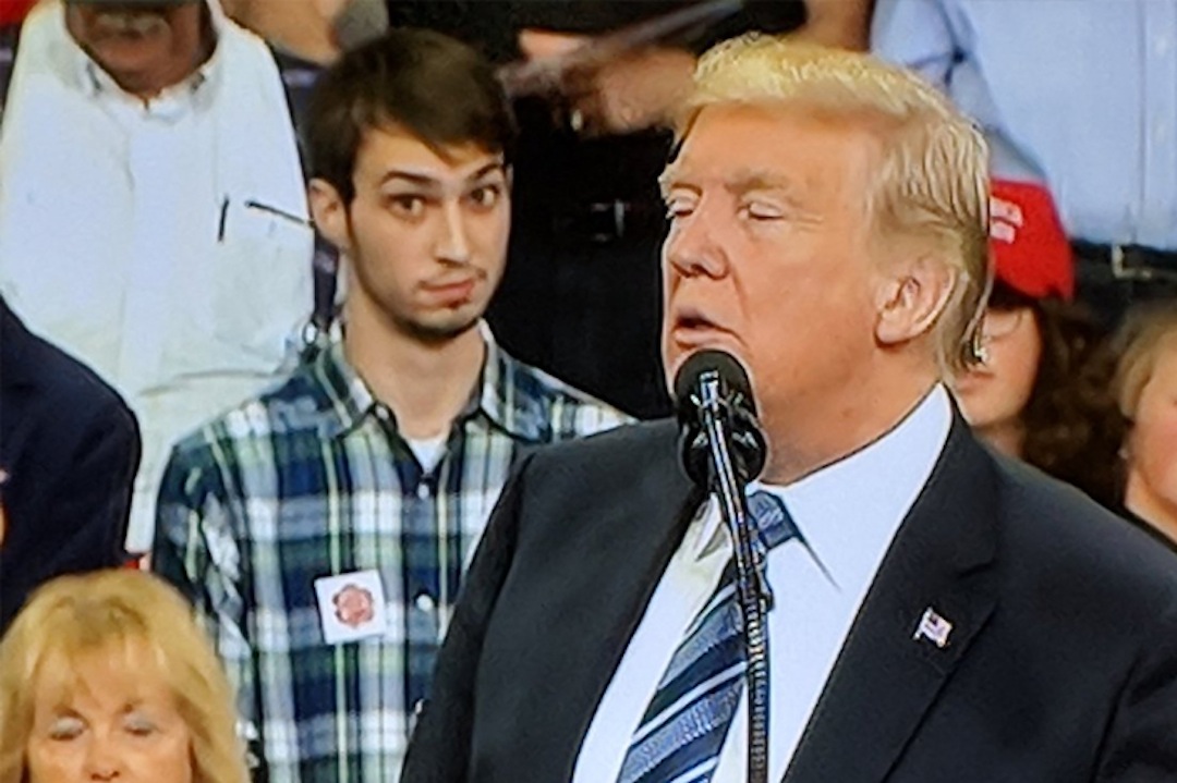 Where was I? Oh, right. What I wanted to point out was that every shirt in the men’s department was plaid. PLAID. Tartan, in tasteful color combinations, as far as the eye could see. Was this what most men wanted? I asked myself walking from one kiosk cluster to another. It all felt so regressive, like the last bastion of heteromasculinity represented in a pattern—a harkening to the days of the past, when we couldn’t imagine a ignorant racist con-artist as our president. I started thinking about the guy that made the news a few weeks ago, who the media dubbed “the plaid guy.” He stood behind the president as a human backdrop during one of his monthly jingoist rallies. As the President spoke, he reacted with facial expressions and eye-rolling, and was immediately singled out, eventually replaced by someone less opinionated. For a week afterwards, “the plaid guy” became an internet sensation before disappearing just as quickly as he appeared.