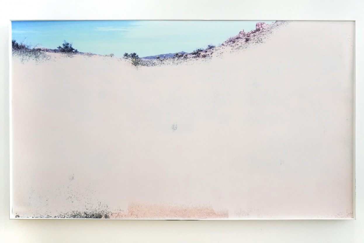 As anyone who has returned home after a period of time away would know, things never quite remain the same way you left them. The Los Angeles–based multimedia artist Cybele Lyle grew up in Pasadena, California, with the San Gabriel Mountains in her backyard. Nothing embodies Los Angeles’s curious topography the way this location does: look east and this picturesque backdrop opens onto the vast Mojave desert; look west and the hazy lights of Hollywood glimmer through the smog. After attending schools in Ohio, New York, and San Francisco and living in Oakland, Lyle now makes work in L.A.’s Fashion District, creating installations out of fabric she has purchased from a local store for three dollars a pound. Location is at the center of her recent series, The Desert in Four Parts (2018), currently on view at Et. al etc., alongside photographs from Lyle’s Untitled (Desert Series) (2018). In these works, Lyle renegotiates her relationship to the rapidly changing landscape of her childhood home: “I feel like I'm seeing a place I've known forever for the first time.”1