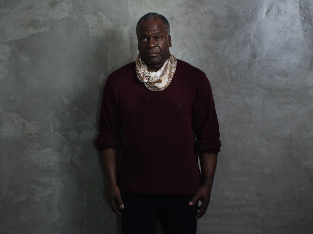 Woods’s practice of reclamation is built around creating the conditions for such momentary opportunities, which are as provocative as they are encouraging of patience. In her newest dual-channel video installation, Conversation, two characters (an older, dapperly dressed black man in the role of the father, and a black woman in her early 30s as his daughter) face each other across the physical gap between the screens, alternately directly addressing one another or sidestepping questions that feel as if they’ve been left unanswered for too long. In unassuming street clothes, the two lean against separate sponge-painted gray walls in an otherwise empty frame. Their conversation is intimate but mundane, with the daughter’s awkward interrogations eventually leading to her demand for an overdue apology.