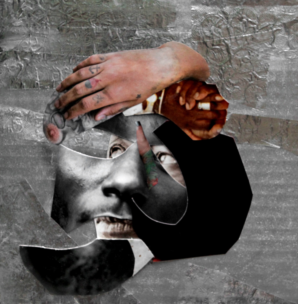 Suné Woods. Totem (3), 2013. Mixed media collage, 6 x 8 in. Courtesy of the artist.
