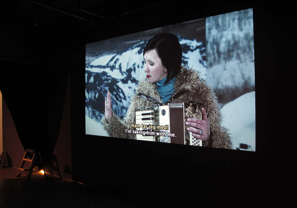 Ryan Trecartin is known for his videos in which he portrays multiple characters, often through absurd costuming and makeup. In Kitchen Girl (2001), shown at the exhibition, Trecartin depicts the borderline mania of a frustrated mother. Russian collective Chto Delat’s A Border Musical (2013) is a humorous and witty musical about differing cultural expectations for family life. Keren Cytter’s Untitled (2009) also depicts a series of complex and confusing family relationships in the form of a play shot in the style of John Cassavetes’s 1977 classic Opening Night. While Cytter’s actors are onstage and backstage, the camera follows and documents all of their movements and interactions, a clever mirroring device that manipulates the viewer’s expectation of seeing a linear narrative arc normally presented on a stage. This in turn throws the viewer into a state of bewilderment similar to that of the characters that the actors are portraying.