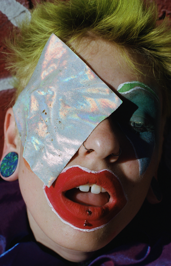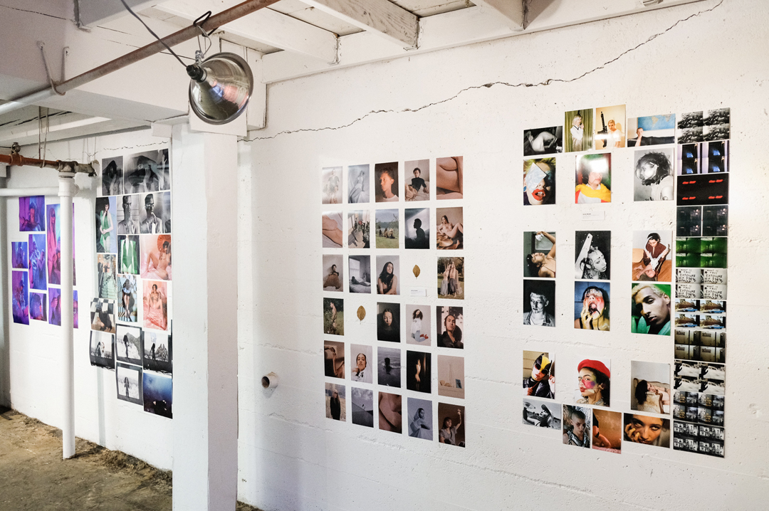Grapefruits Art Space is currently run and operated by Martha Daghlian, Cameron Hawkey, Jamaali Roberts, and Alix Ryan. Located in a spacious warehouse in northeast Portland, Grapefruits is an artist-run community space centered on accessibility and the support of emerging artists in the area. Grapefruits makes this accessibility transparent by continually providing a free space for young, marginalized creatives. The curation of Fantasies in Parallel successfully captures the essence of what it signifies to acutely convey the loud nature of social photography in a less polished, but perhaps more earnest, documentation. With their intersectional focus, each of these thirteen photographers relays narratives of femme and trans bodies, and is concerned with capturing the quotidian moments and struggles of what it means to exist in a queer body. In these works, consciousness of identity and playing dress-up for social gatherings coyly conflate. The photographers intermesh their own subjective experiences with those of their models, both candid and staged, to lay everything bare and fiercely demonstrate the inquietude of burgeoning youth and identity.