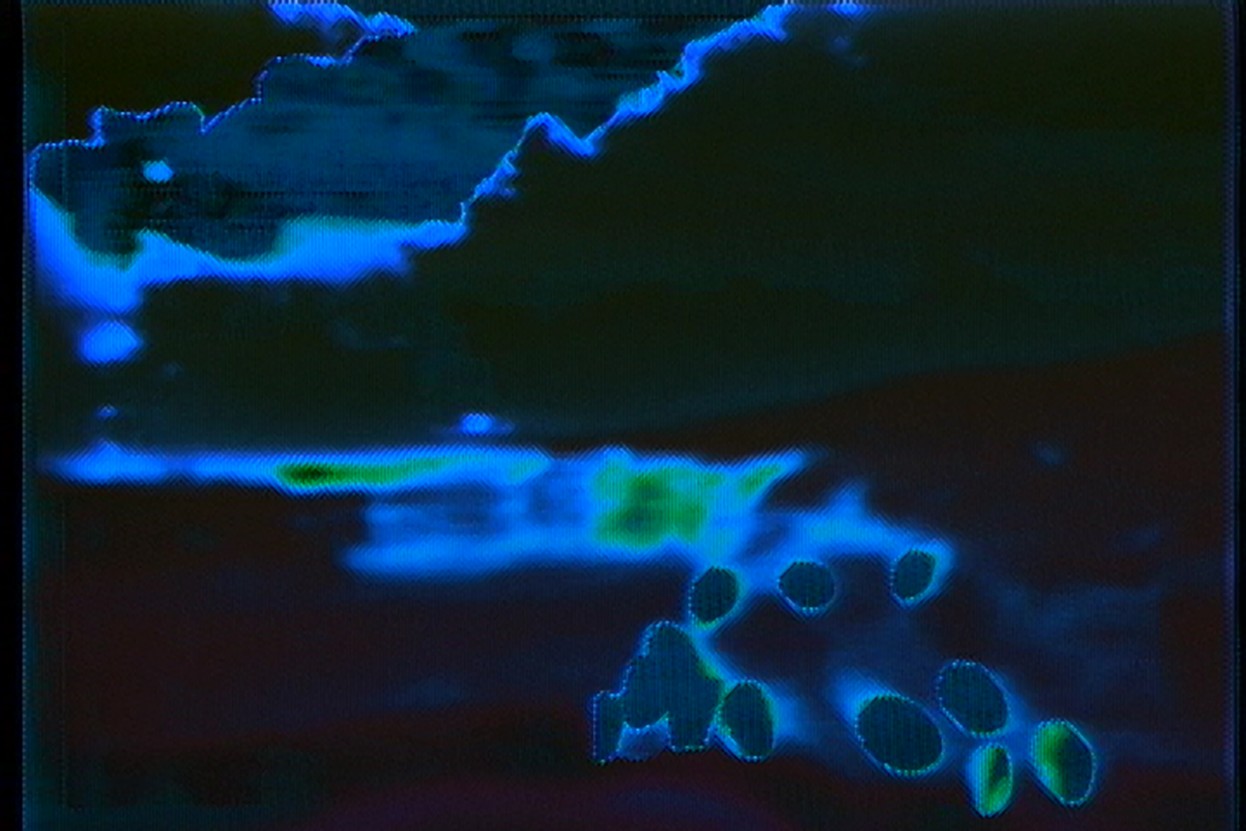 He understands modern life as unfolding in a unified field of signal distortions, modulations, multiplications, and attenuations, and engages it with a DIY methodology that he speculates was an inheritance from his “inventor-hoarder” Portuguese father. As a self-described “auto-ethnographer,” he knows the field can be organized by storytelling and representation, but he prefers to see what arises from engagement with transmission failures, broken equipment, unstable recording media, and encoding glitches. The resulting abstractions express what he calls an “ambient identity”—a phrase he first heard from Native artist Grace Rosario Perkins—that is informed by family and ethnicity but intentionally devoid of the kind of signification that would fix his identity and by extension that of any viewer who approaches his work.