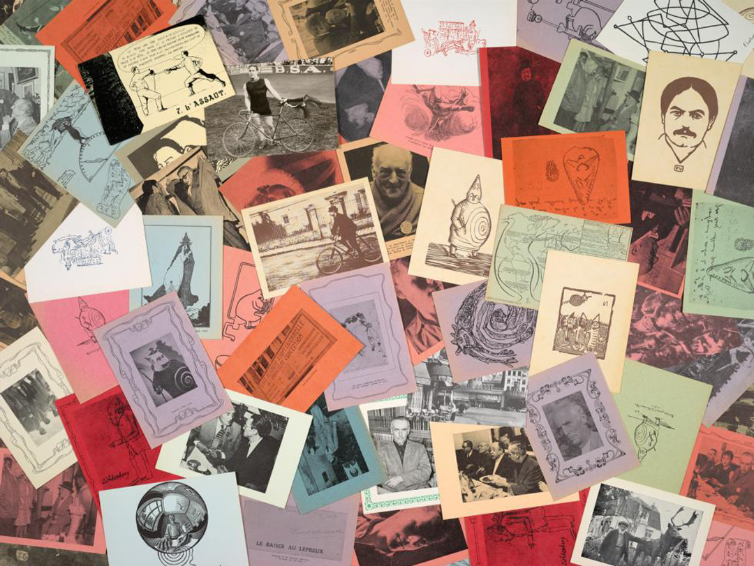 Postcards from Harald Szeemann’s collection of 'pataphysics material. The Getty Research Institute, 2011.M.30.