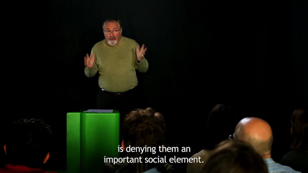 And because the audience gives information back to the piece. I recognize that the energy level is different for the speaker if there is an audience rather than if you just do it for the camera. It’s really this moment of reception. The reading of the artwork is already included in the artwork by having the audience there.
