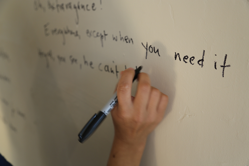 CLR: What I get more often are writers who want to wrap themselves in expert voices. They just become waiters for other people’s ideas, and that’s really problematic. You’re standing here in front of this piece, what do you think about it—not Derrida or Foucault or Judith Butler. New writers will pull from other sources because they don’t know how to talk about something; and they’re led to believe that there is one right answer and that in order to sound smart they have to read the right books.
