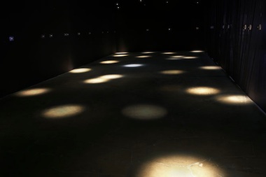 JC: That goes back to Last Day in the Beginning of March, which was shown at the UC Berkeley Art Museum in 2003. That piece also included moving lights, but it wasn’t related to an image directly. I gave myself the challenge of creating a narrative out of the most minimal point of view—not from an artistic perspective, but from an informational perspective. I took twenty-five lights and shined them on the floor and modulated each light with a single rhythm tied to something that my brother did on the last day of his life. I see it as a poem of the last day of my brother’s life. These rhythmically changing lights—some slow, some fast—each had a sentence of text near them to cue you into what you were looking at or, more importantly, what you were feeling. You walk around and gradually get a sense of the narrative. It’s really not about looking at twenty-five flashing lights; it’s more about experiencing the environment in a way, mostly or majorly using your peripheral vision. There is a connection between that work and the low-resolution works in trying to reach an essence of an image, or in that case, of an event of the day.