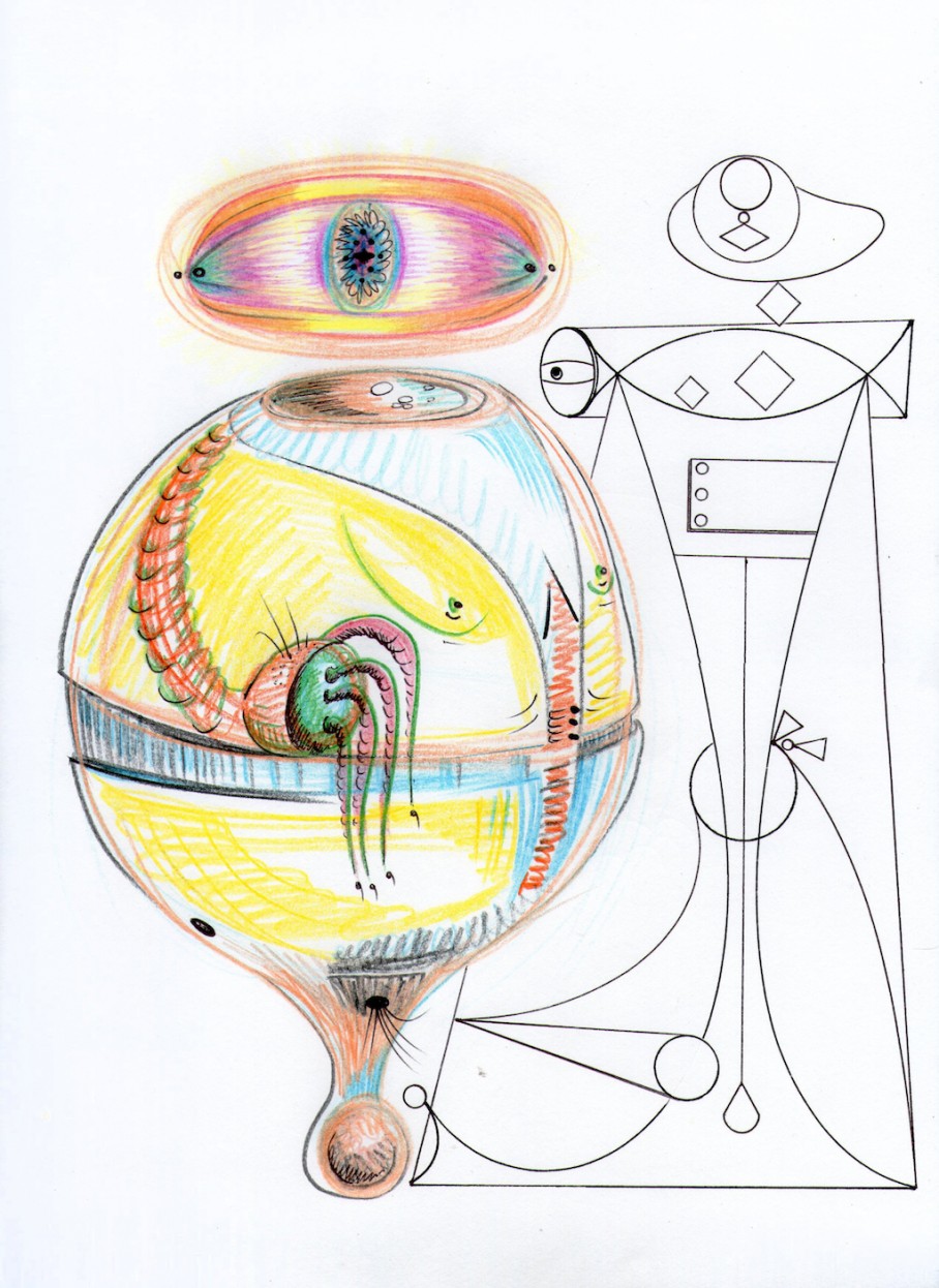 Ad Minoliti. Geo Sci Fi, 2016; ink and colored pencil on paper; 12 x 9 in. Courtesy of the Artist.