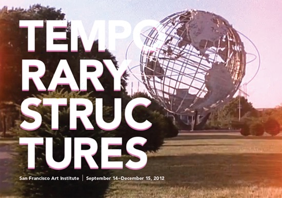 San Francisco Art Institute. Temporary Structures exhibition card, 2012; designed by Geoff Kaplan; exhibition co-curated by Glen Helfand and Cydney Payton. Photo: Glen Helfand.