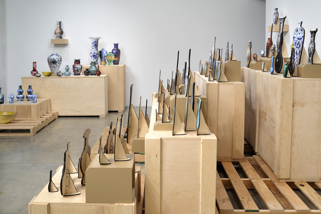 Syjuco also positions her objects as transitory commodities, displaying them on shipping pallets and wooden pedestals, rather than the white pedestals of museums and galleries. These 146 objects, produced in an edition of three, echo the variety of a product line. Syjuco has exhibited portions of RAIDERS in galleries and art fairs, where collectors and museums have purchased elements of this work. These items, like the original antiquities they reference, have entered the commercial exchange system of art and will find another home, or possibly be stored, loaned, or resold. Presumably for sale, Syjuco displays some of the elements from RAIDERS on Catharine Clark Gallery's website. The items are listed as "Selections," "Variety Packs," and clusters based on taxonomy, like the vases' color, style, or shape.4 These groupings are sometimes numbered as Variety Pack #1, Variety Pack #2, and so on, furthering the sense that these are commodities that collectors can select from. As the web exists as both an ever-expanding encyclopedia of our activities and knowledge, one of its main drivers is commerce. With her imagery derived from the web, Syjuco's objects also reenter the web, but as commodities.