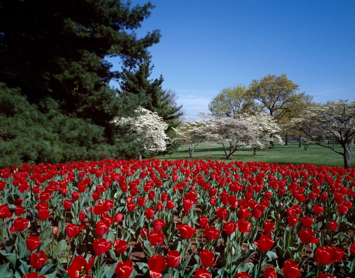 Carol M. Highsmith, Spring tulips and dogwoods on the George Washington Memorial Parkway, McLean, Virginia, between 1980 and 2006. courtesy the Carol M. Highsmith Archive, Library of Congress, Prints and Photographs Division. Photo: Carol M. Highsmith.