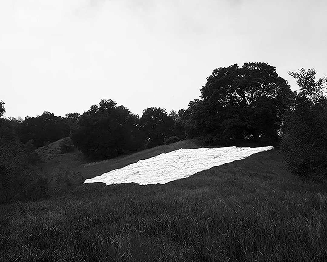A Test for Forty Acres alludes to the layered significances of the Field Order. First, to the expansiveness of forty acres: the “test” component of this work indicates that the blankets laid out do not equal that size, which would exceed the bounds of this photograph; to own land is to establish a foothold in the American economy. Second, to the affective impact of having space: Mylar blankets often provide sanctuary and warmth after exertion or exposure; here, they serve as a mode of gently holding the land and its ancestry; to call land one’s own is to belong. Third, to ephemerality and failed promises: the order was overturned within the year by President Andrew Jackson. A Test for Forty Acres reminds us that the natural world is not neutral, not without laws and histories that acutely affect the orientation of Black bodies. Lee writes that when she is in wilderness, she is “haunted by a ghost of sorts.”4
