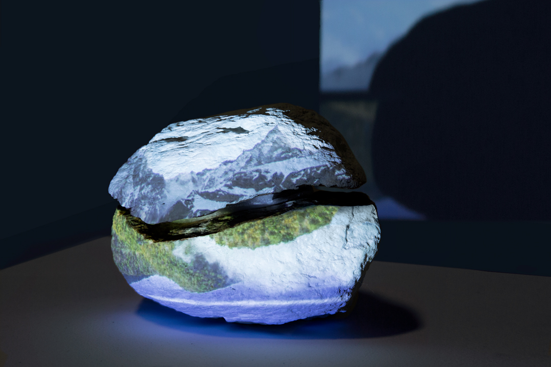 Jonas Becker. Mountain is a Mountain, 2015-present; single channel HD video with sound projected onto rock; approximately 10:00. Courtesy of the artist.