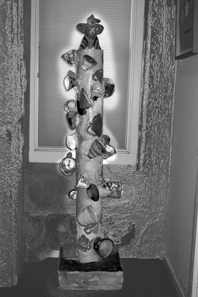 The works in the collection share with the patron a blend of stream-of-consciousness decision making and self-aware exhibitionism. Artist and subject (often, but not necessarily, one and the same) engage in a strange reintegration of two motifs—surface decoration and the figure—missing from the high modernist traditions of abstract expressionism (mostly absent from this collection but present in spirit) and minimalism (a style completely absent from the works on display). Paint and/or glaze is applied liberally without being beholden to verisimilitude; swirls, brush strokes, endless small details mark every surface (marks that are also evident in Nelson’s images). These works are about identity, but not in the collective/social sense. Rather, the artists are presenting themselves and/or their subject flipped inside out, fully aware of art making as site for the contradictory effort to show the unshowable.