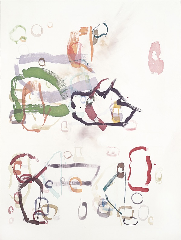 John Cage. 75 Stones, 1989; color spit bite aquatint with sugar lift aquatint on smoked paper; 54 x 41 inches; published by Crown Point Press, San Francisco. Courtesy of Crown Point Press.