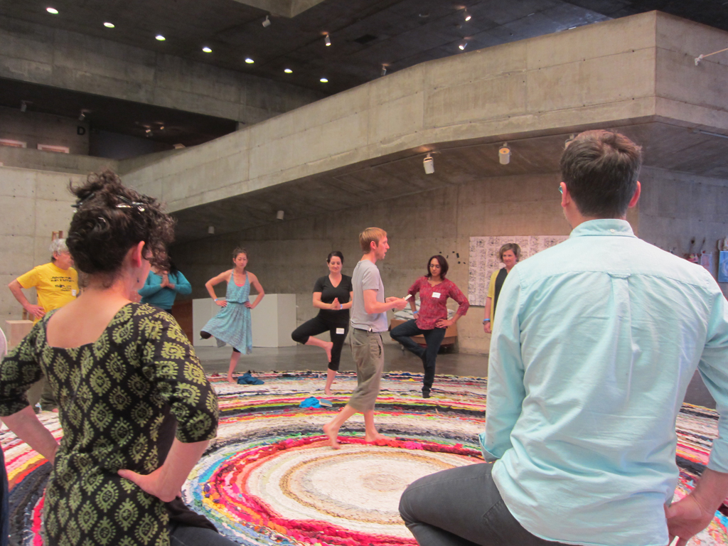 Yoga for Adjuncts: The Somatics of Human Capital workshop, Valuing Laboring in the Arts practicum, April 19, 2014, UC Berkeley Art Museum. Courtesy of the Arts Research Center, UC Berkeley. Photo: Megan Hoetger.