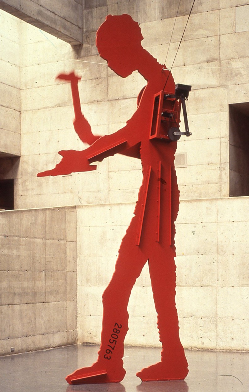 [Figure 3] Jonathan Borofsky. Hammering Man, 1976–1983; wood, paint, steel, aluminum, foam, Bondo, and motor. Purchased with the aid of funds provided by the National Endowment for the Arts, the UC Berkeley Art Museum Council, its members, and friends. Courtesy of BAM/PFA.