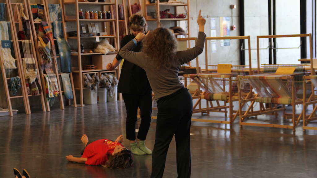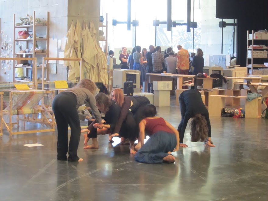 [Figure 7] Collective Actions, Moving Thought workshop, Valuing Laboring in the Arts practicum, April 19, 2014, UC Berkeley Art Museum. Courtesy of the Arts Research Center, UC Berkeley. Photo: Joanna Lehrmann.
