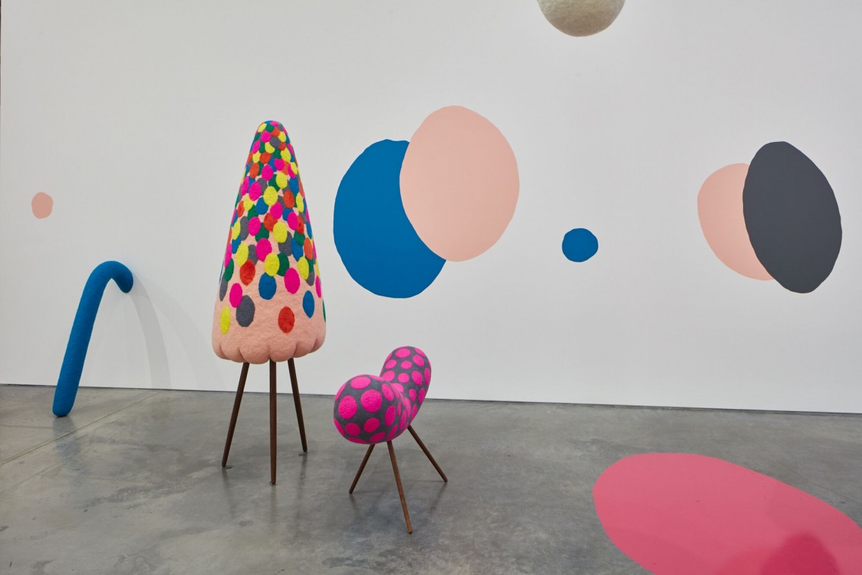 Some of Miki’s work recalls the bold, pulsing patterns of the artist Yayoi Kusama, with slightly fewer polka dots. But Miki said the inspiration for this work came partly from the Japanese American sculptor Isamu Noguchi, who designed public works and gardens. Miki has visited several of them and says that going to his 400-acre Moerenuma Park in Hokkaido, Japan, made a big impression on her. At the park—built on a former waste-treatment plant, with fountains, wading pools, mountains, and rivers—visitors can swim, cross-country ski, or go sledding, depending on the time of year. When she was at the park, Miki felt engaged in the moment, experiencing a sense of joy at being with others outside and feeling connected to them and the place.