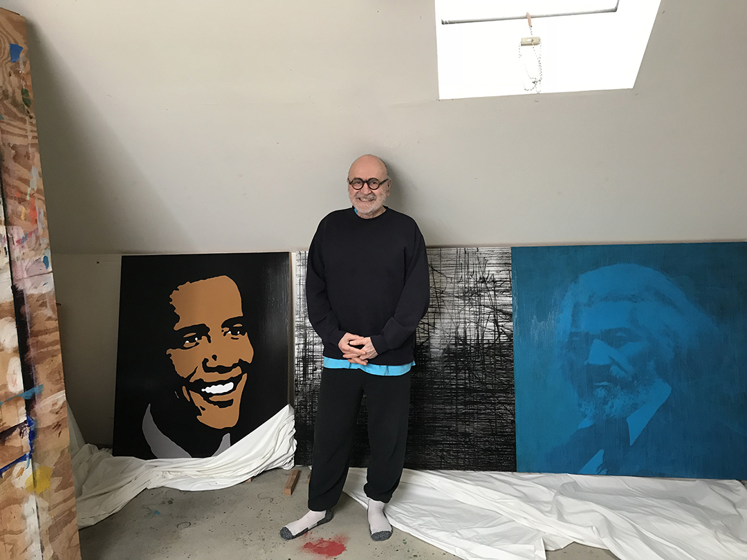 Rupert García in his studio with Obama From Douglass. Photo: John Zarobell.