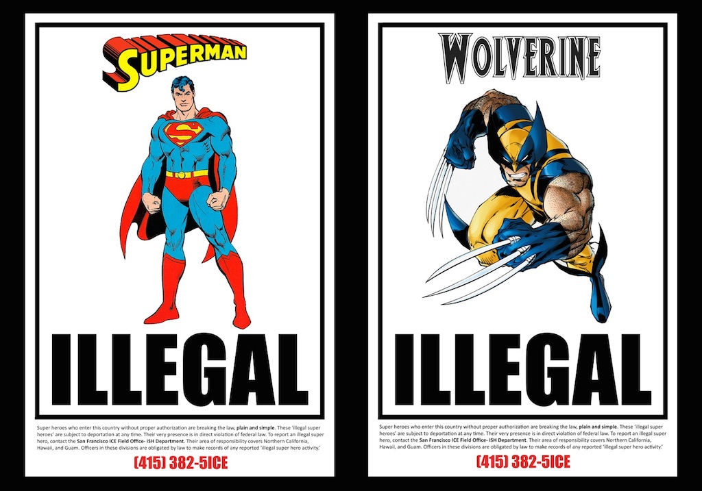 Like many of us, superheroes have complicated origin and immigration stories. Most iconically, Superman was born with the name Kal-El on the planet Krypton. Superman's father sent him to Earth before Krypton was destroyed, and he was adopted by a rural family in Kansas. In the view of ICE DISH, Superman is literally an illegal alien, which prompts the following questions: How would Superman obtain a visa from Krypton, and did the U.S. have a diplomatic relationship with Krypton? Does using an alter ego, Clark Kent, constitute identity fraud? Since Superman was sent to Earth to avoid the destruction of his planet, does that make him a refugee and thus eligible for asylum? Or, since he came to Earth under the direction of his parents when he was a child, is he a "dreamer" who qualifies for DACA? If the US government were to deport Superman, where would they send him, since his home planet was destroyed? Do his superpowers constitute "extraordinary abilities" and make him eligible for an O-1 visa? Has no one questioned his immigration status up to this point because he is depicted as a white man? In pursuing these seemingly absurd questions, Rivas's project prompts us to consider the bureaucratic mazes that real people face.