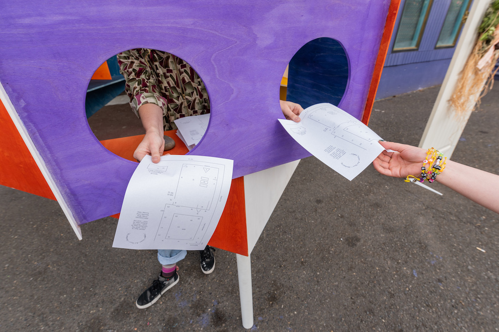 SC: A traditional art fair is mostly about selling work and networking. Our fair was about making new friends and connections and starting conversations about really interesting work. A traditional art fair is hierarchical; ours is not. A traditional art fair costs money; ours does not, for neither participants nor visitors. In fact, we were able to give some participants stipends. Our fair is about community and many different types of art functioning for the benefit of that community. One of the projects from the fair that is a good example of Utopian Vision’s message was by Private Places and M. Page Greene, who performed a ritual throughout the fair to help to release pain that fairgoers may be experiencing. There was no irony or sarcasm at UVAF.