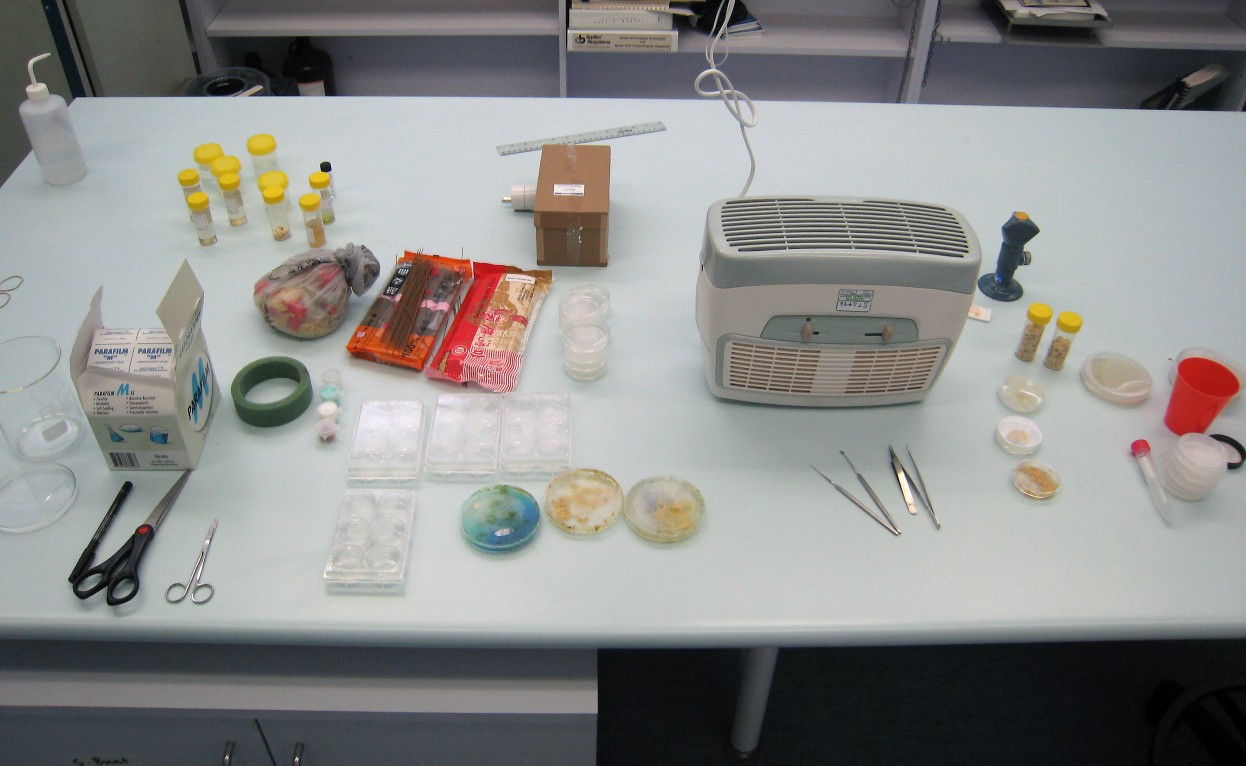 The laboratory space and tools that I used for cultivating the slime mold Physarum polycephalum in preparation for video microscopy. Photo: Philip Ross