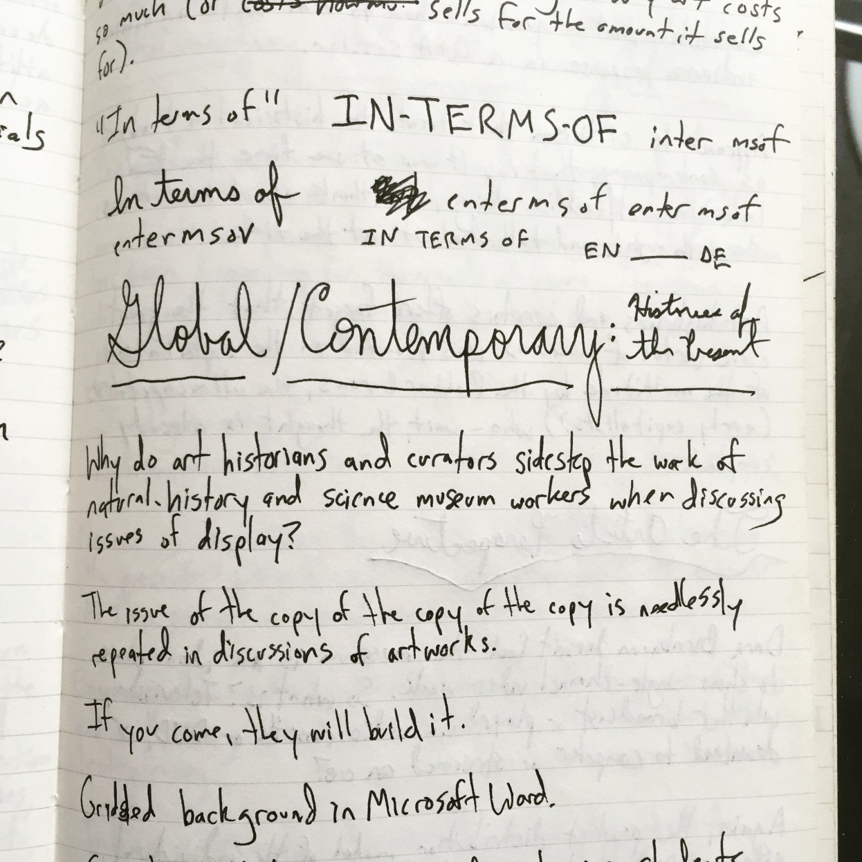 Page from the author's notebook, from March 2011 conference “The Now Museum,” during which he conceived In Terms Of.