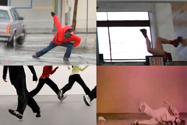 Taking Up Room on the Floor; video stills (clockwise from upper right): Michelle Fletcher in Hannah Ireland’s The Proscenium; Anna Halprin in James Broughton’s The Golden Positions; Siobhan Davies, The Score; and TURF Feinz in YAK Films’ RIP Rich D. Courtesy of Royal Nonesuch Gallery, Oakland.