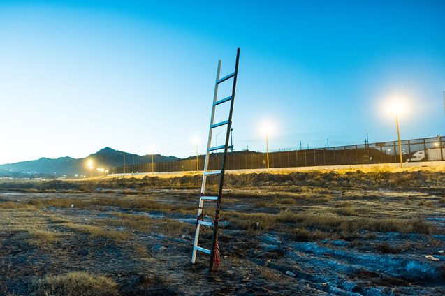 Khaled Jarrar. Khaled’s Ladder, 2016; made from parts of the Mexico/USA border. Courtesy of CULTURUNNERS.