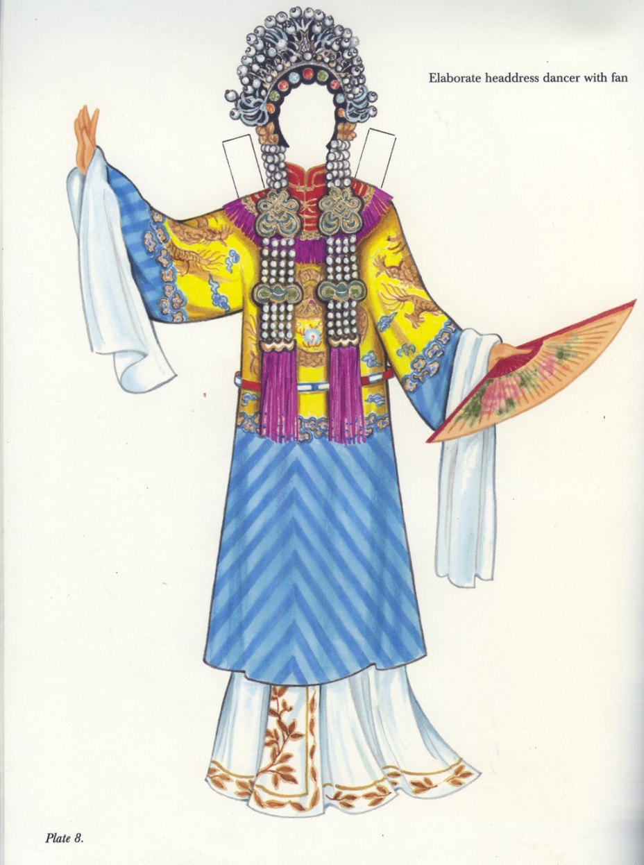 She has written to me that she remembered seeing Chinese opera as a child. It left a strong impression on her: the costumes, the dance gestures, and the music were “so different that it was unforgettable.” Now when I look at Chinese Opera Costumes, I wonder which character she identified with most as young girl: the “Female Warrior, Plate 4,” or “Older Lady in a Comic Role, Plate 3,” or “Dancer with Fan, Plate 6,” or “Elaborate Headdress Dancer with Fan, Plate 8”? Did she ever want to be the “Good Official” and not a dancer? Do her illustrations of characters embody memories of absence or longing? She does not give many direct answers to my more poignant questions. Perhaps, even among family, some aspects of history must remain mysteries, and we only have our speculations. In collecting Ming-Ju Sun’s books, I can turn to them for access, and allow her space.
