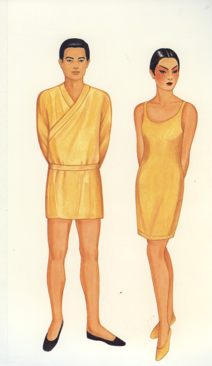 My grandmother is private, keen to detail, and very much her own person. When I asked her in a letter about her choice to be an artist, she wrote, “By the age of thirteen, I knew I wanted to do art when I grew up.” On her relationship to drawing paper-doll books, she revealed that she had been interested in clothes design since age seven. She first got hold of blank paper while on a boat, coming to the United States. “In China during the war, such things were not available,” she wrote. “The only paper children had were tablets of lined paper for school work.”