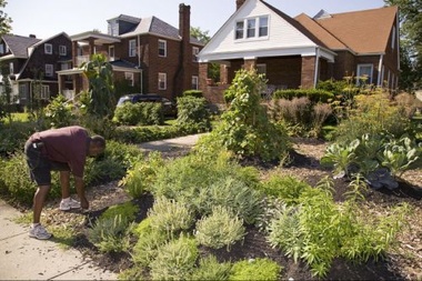 Fritz Haeg. Edible Estates Project. regional prototype garden #6: BALTIMORE,Maryland, 2008; commissioned by the The Contemporary Museum - Baltimore for the exhibit Cottage Industry, planted April 11 to 13, 2008. Courtesy of Clarence and Rudine Ridgley. Photo: Leslie Furlong.