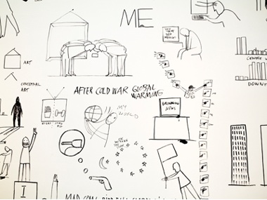 Projects 85: Dan Perjovschi, What Happened to Us?, 2007; permanent marker on wall; installation detail, The Museum of Modern Art, New York. Courtesy of the Artist and Lombard-Fried Projects, New York.