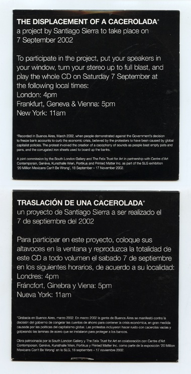 1. Santiago Sierra, The Displacement of a Cacerolada, CD sleeve, 2002.