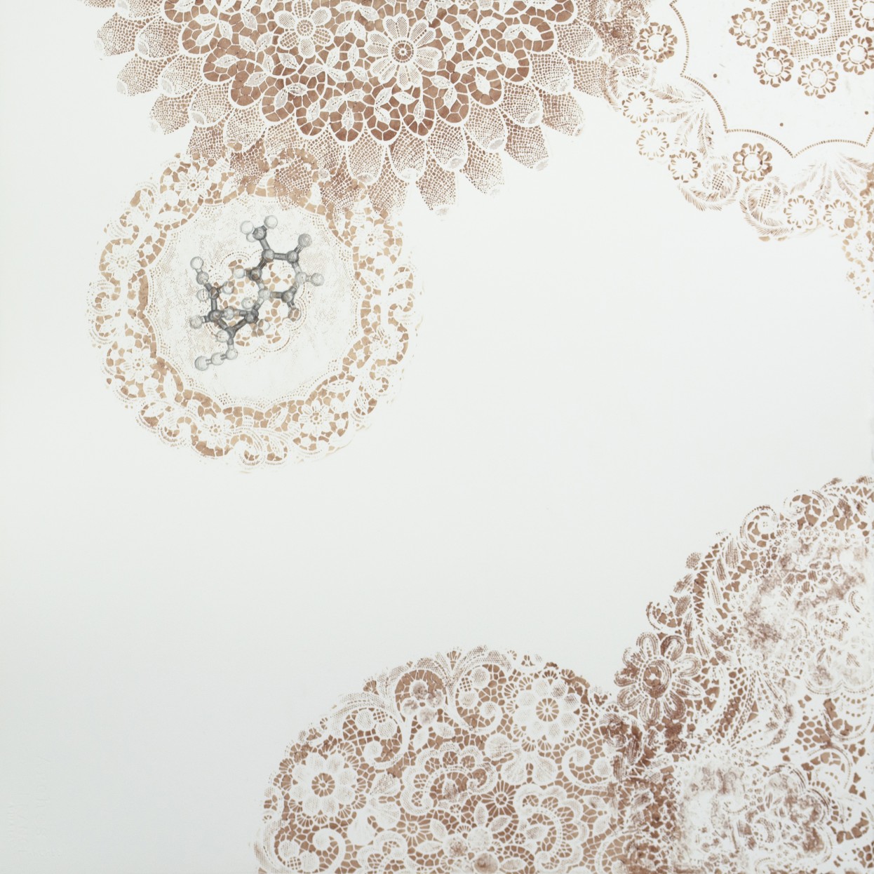 This project led me down numerous paths of biomedical investigation in order to produce the work. Virus (2002), a series of drawings, involved research into viral structures. The drawings in Elaborative Encoding (2007) were inspired by neuroscience studies of the formation of memories: I was struck by the poetic implications underlying the encoding of memories using information that we already know to form an elaborate web of related memories and knowledge. This notion became the basis for drawings of doilies, drawn thread-by-thread, with frayed dendrite-like ends between the gaps of the patterns. Host (2014), a series of sculptures and works on paper, draws on my memories of AIDS arriving as an unexpected guest at our quaint home in the 1980s and quietly announcing itself in hollowed cheekbones, sunken eyes, and Kaposi sarcoma lesions. The work was a reflection on coming to consciousness about HIV and AIDS while coming of age in the suburban South. However, in addition to drawing from my personal experience, I researched the sociopolitical history of HIV and AIDS and collected oral histories from family members for this work.