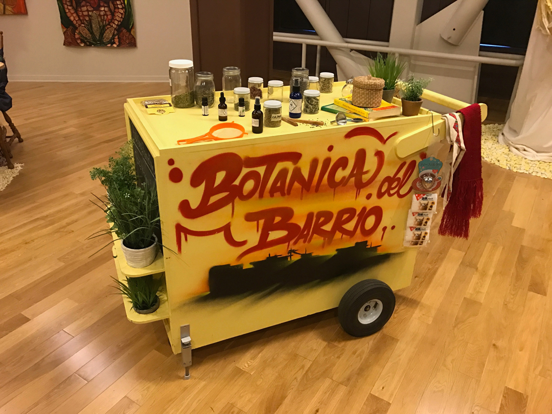 Felicia "Fe" Montes. Botanica del Barrio: Rolling Remedios Mobile Medicine Cart, 2016. 35 x 42 x 26 inches. Photo: Carlos F. Jackson.