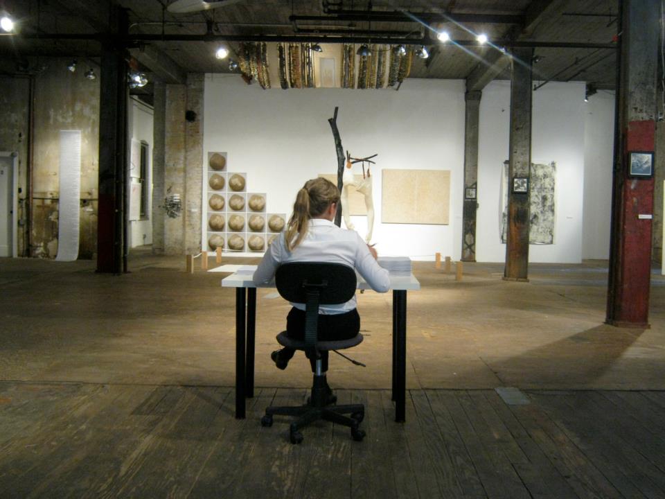 Shannon Finnegan. 8 Hours of Work, 2012 (performance still); Saturday, June 9, 2012, 11 a.m.–7 p.m. Presented by Recession Art in conjunction with Everything Is Index, Nothing Is History at the Invisible Dog, Brooklyn. Courtesy of the Artist.