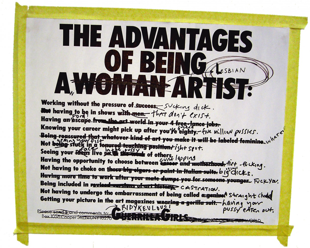 Emblematic of its mission, the cover of the first issue features a photo (part of a larger series by Roysdon) of a masturbating Roysdon wearing a strap-on dildo and a facemask of David Wojnarowic—underlining an affective fag/dyke connection. This gesture across gender and generation provocatively suggests that LTTR’s inevitable engagements with the past are hardly straightforward, and can be irreverent, joyfully perverted, or achingly intense. The group has numerous queer art/activist precedents, including the AIDS/HIV graphics-making collective Gran Fury, as well as feminist legacies such as the West-East Bag (conceived by Judy Chicago, Lucy Lippard, and Miriam Schapiro in 1971 as “an international information liaison network of women artists”) and Heresies (formed in 1976 as an independent feminist, art, and politics publication). In fact, LTTR often explicitly references previous feminist practice, as in the title of the journal’s fourth issue: “Do you wish to direct me?,” a provocative question appropriated from Lynda Benglis’s pioneering video Now (1973). Benglis, in an autoerotic meditation on the possibilities of the then-emerging video technology, asks this query to her own on-screen image. LTTR answers her question, dialogically, in its editorial statement, noting that “sometimes when you call, what you get back is both an echo and a response,” and the playful commands hinted at by Benglis are taken up by the works in the issue itself, such as Liz Collins’s red knit glove that directs the hand into unexpected configurations. But with its “genderqueer” focus—instead of calling itself a strictly lesbian project, LTTR instead invokes another kind of queer/trans sociality—LTTR has an identity-defying attitude that is markedly different from separatist moments in radical feminist art production. For example, consider the Lesbian Art Project, formed in Los Angeles in 1977 by Terry Wolverton, Arlene Raven, and others. That group similarly curated exhibitions, made small publications, and programmed events, but defined itself as exclusively by and for lesbians.