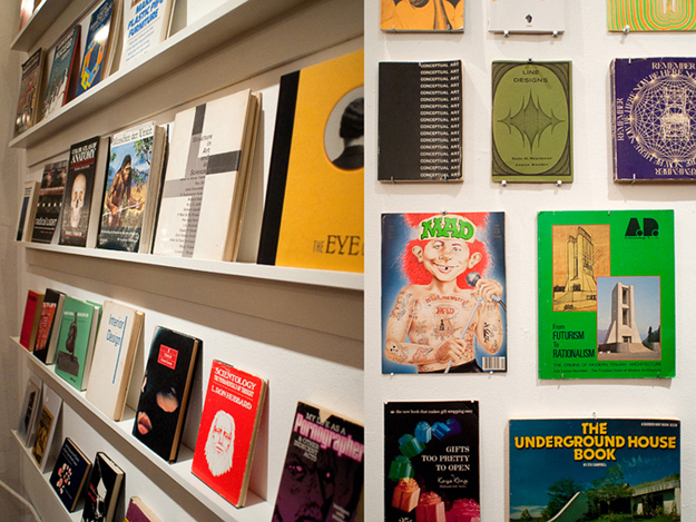 We came indoors to the gallery space with Scanners, and the display strategies of the flea market spread out. While some of the store was arranged in a conventional fashion (books on shelves, spines out), at least seventy percent of Scanners was devoted to face-out display. It was important that visitors could clearly see the covers of the books. From our experience at the flea market, we knew that people were interested in the books we had laid flat on the tables simply because they were more visible.