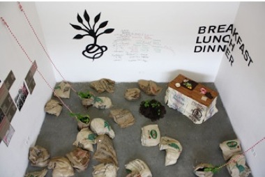 Natasha Wheat, in collaboration with Sarah Magrish Cline and Mark Gravel. Bean In, April 2010; installation view, California College of the Arts, San Francisco. Courtesy of the Artists.