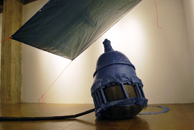Michael Arcega. Work In Progress, 2010; poly-tarp, trash bags, utility chord, foam, pins, hair dryer; dimensions vary. Courtesy of the Artist and Marx & Zavattero, San Francisco.