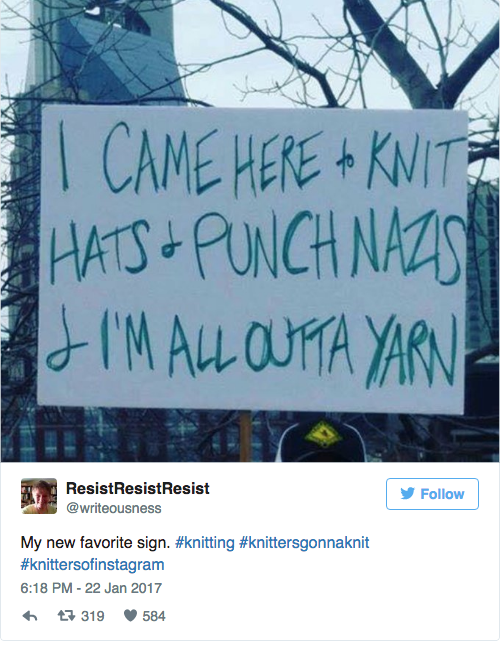 With these recent incidents in mind, institutions acquiring signs from the 2017 Women’s March on Washington deserve praise for their engagement of grass roots community and their deviation from the norms of collecting practices. The Women’s March itself, however, presents many of the same problems with respect to intersectionality and visibility embodied in the modern museum as an institution. In a crowd of millions, not every participant’s rhetoric (or demeanor) will be neatly aligned with the comprehensively packaged fundamentals of the cause. The 2017 Women’s March suffered from one such misstep in its prominent featuring of pink, knit “pussy hats”. Protestors marched in the thousands proudly proclaiming the beauty and strength of the female form, detailed by the hats’ kitschy biological likeness. It’s noteworthy that in times of contemporary crisis, art often returns to its cathartic and utilitarian roots in craft. The hats missed, however, that an intersectional feminism and its inalienable rights includes womxm who do not have vaginas, and women whose reproductive organs aren’t “pink.” An artful gesture of celebration and solidarity meant to corral like minds excluded transgender women and women of color. With much the same irony, many of the 2017 Women’s March signs were exclusionary to struggles that event should have championed.
