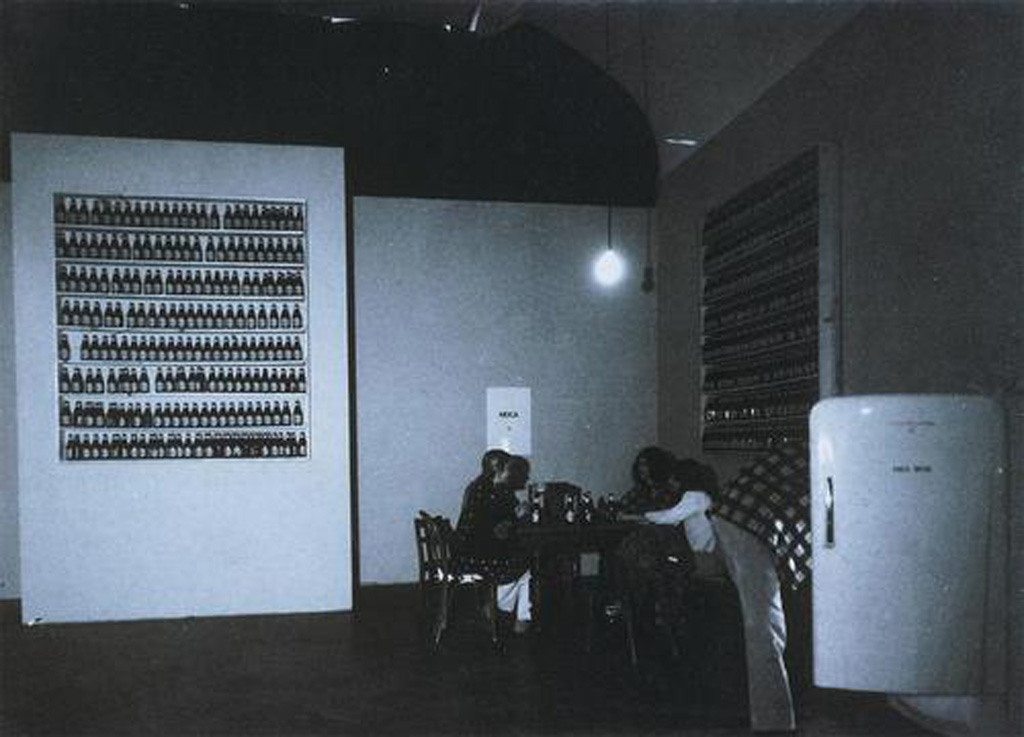 In 1970, Marioni founded the Museum of Conceptual Art (MOCA), a physical but non-collecting museum that kept its doors open until 1984. One of the initial events at MOCA was the debut of a serial piece called The Act of Drinking Beer with Friends is the Highest Form of Art (1970–ongoing), in which Marioni and his friends drink beer together. In the 1970 show, the debris from their conviviality (that is, beer cans) constituted a historical trace of the work. In the piece’s 1971 variation, Allan Fish Drinks a Case of Beer, Marioni sat in the Reese Palley gallery in San Francisco, playing a tall drum with his hands and drinking a case of beer. As Foley describes Marioni’s work in Space/Time/Sound, Allan Fish Drinks a Case of Beer “combined the two aspects of Marioni’s art that continued to evolve in his work: the social definition of activity in time and place, and the abstract definition of space through sound moving in it.”8