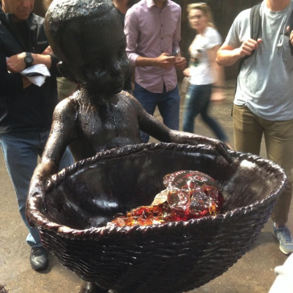 At the behest of Creative Time Kara E. Walker has confected: A Subtlety, or the Marvelous Sugar Baby, an Homage to the unpaid and overworked Artisans who have refined our Sweet tastes from the cane fields to the Kitchens of the New World on the Occasion of the demolition of the Domino Sugar Refining Plant was on view at the Domino Sugar Factory from May 10, 2014 through July 6, 2014.