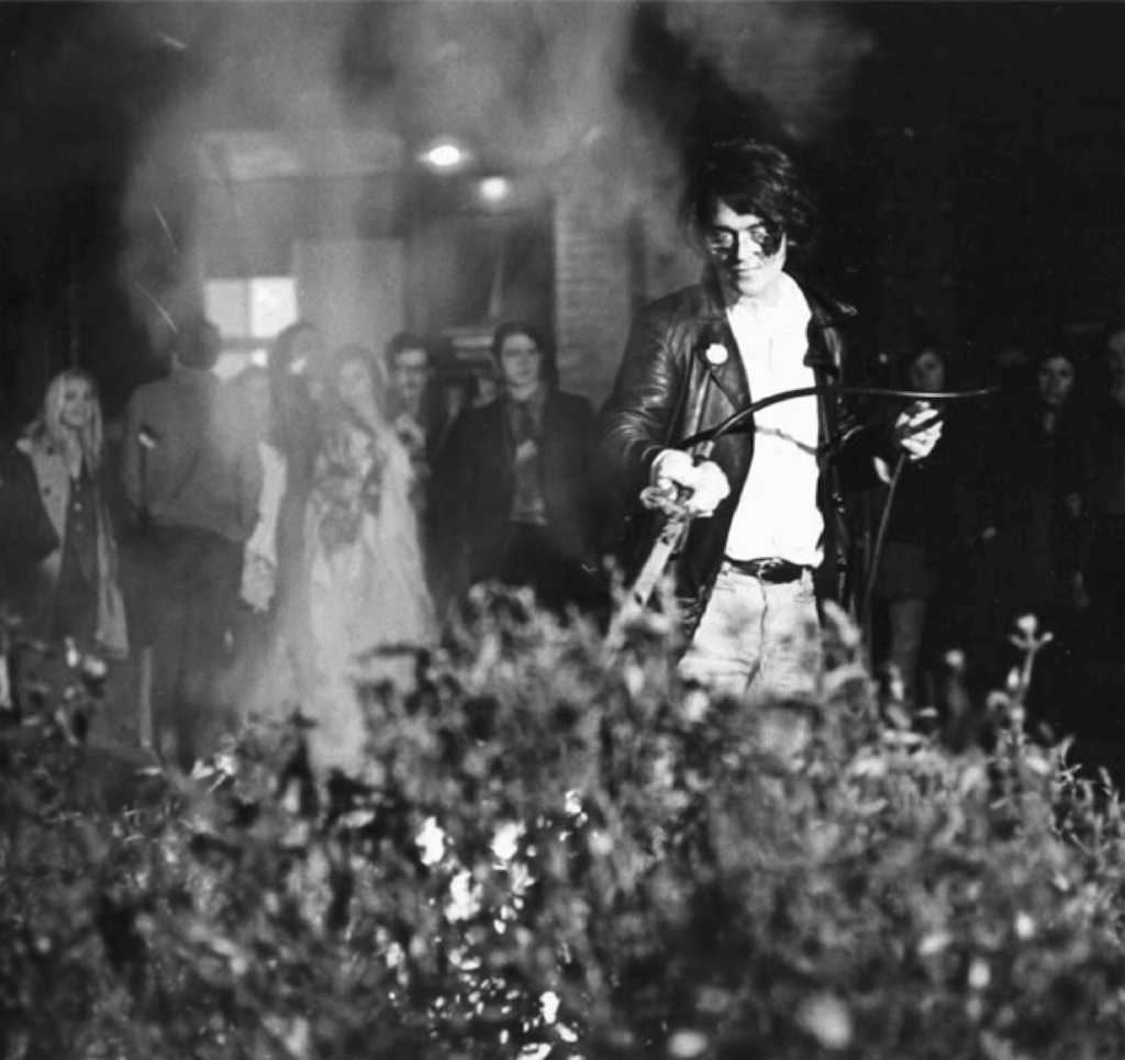 Terry Fox. Defoliation, 1970 (still); performance, Power Plant Gallery, University of California, Berkeley, March 16, 1970.