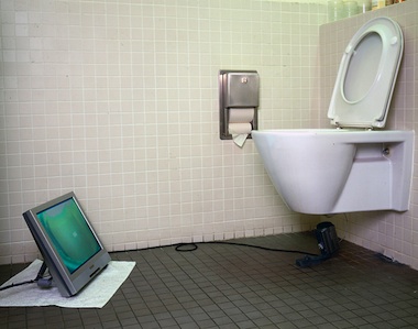 Pipilotti Rist. Closed Circuit, 2000; bathroom, infrared camera, LCD monitor, cables; dimensions variable. Courtesy of Luhring Augustine, New York.