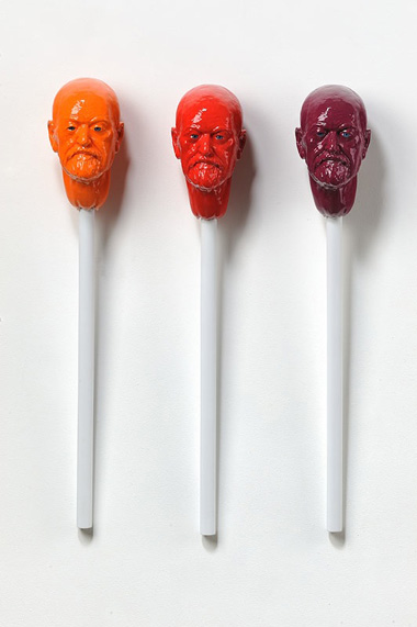 Image: Walter Robinson. Cure (orange, cherry and grape), 2012; polyester resin, wood, epoxy, metalflake; 36 x 6 x 6 in. each. Courtesy of the Artist and Catharine Clark Gallery, San Francisco